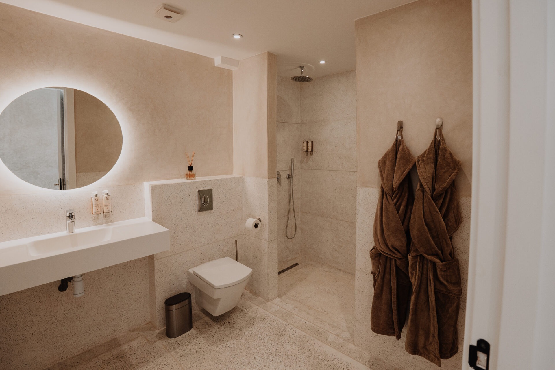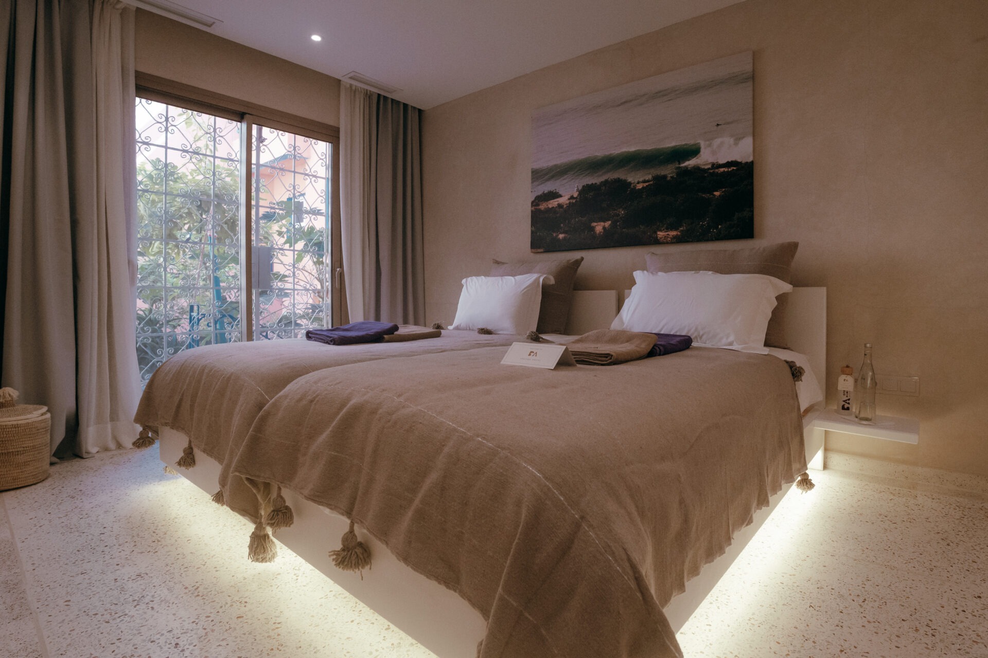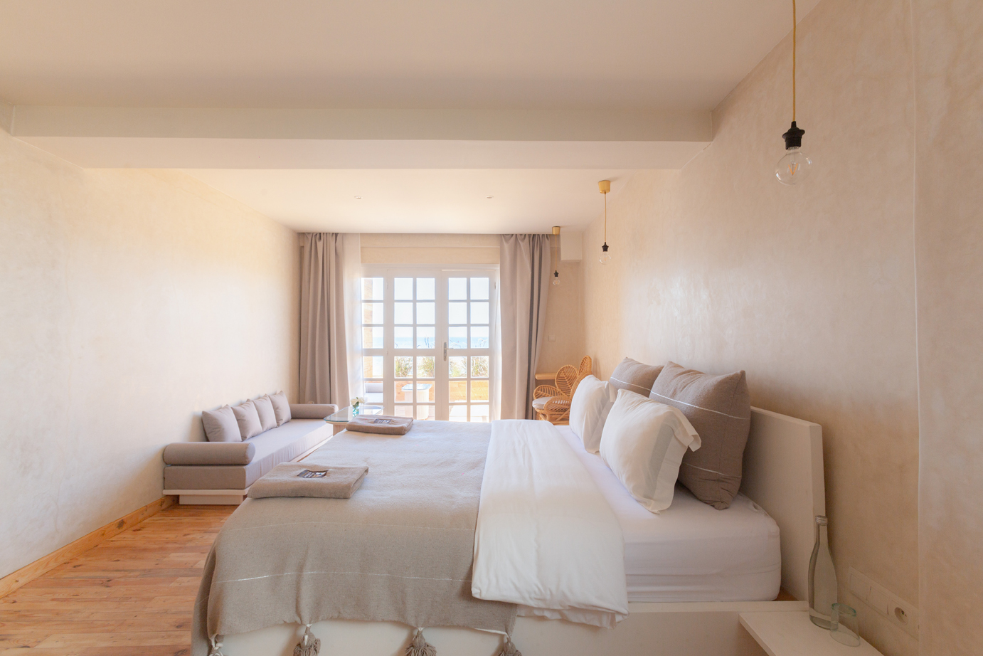 Just 20 m from our Seaside Hotel: the Anchor Point Premium Suites offer you a stylish hideaway with ocean views of Morocco’s most iconic wave – Anchor Point. Each 38 m² suite blends modern Moroccan design, centralized air conditioning, a cozy living area, private bathroom, and a 12 m² terrace with panoramic ocean views – perfect for soaking in the golden hour. Enjoy premium comfort with a king-size bed, high-quality mattress & linens, and a lounge with a sofa bed – ideal for couples, friends, or small families. Expect boutique vibes, laid-back comfort, and front-row views for your daily surf check.
