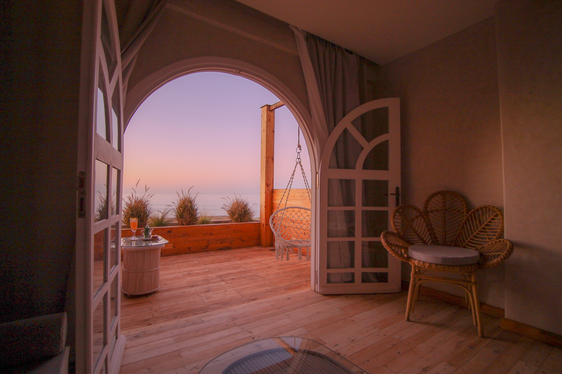 Your personal space to let go and slow down. The absolute highlights of Seaside are the private balconies with hammocks looking out onto the ocean, the huge garden oasis with palm trees by the Boutique Hotel and the infinity pool (12mx6m) with welcoming sun beds for real relaxation. The sun deck is right at water level with views overlooking Anchor Point – the king of the waves in Morocco.