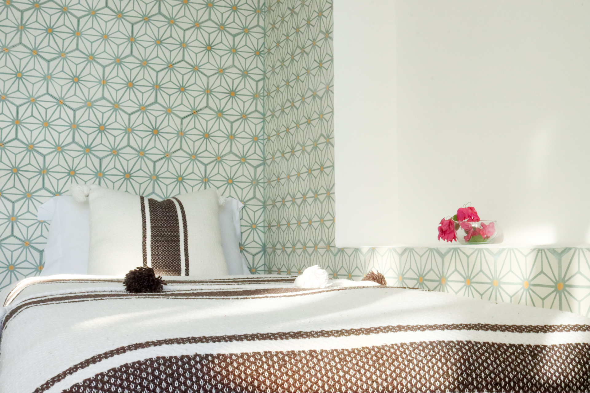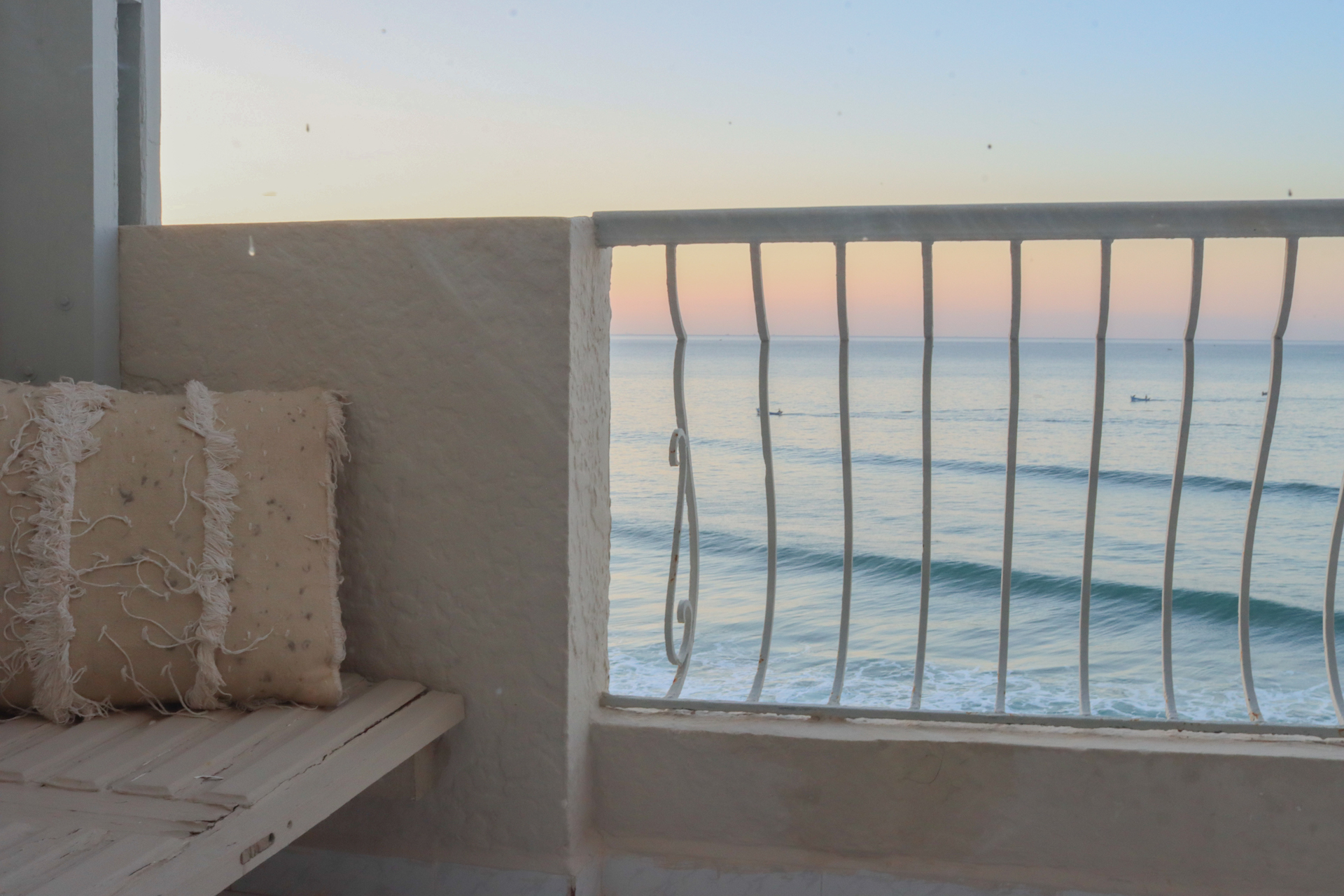 This beach styled Taghazout villa is built on several levels meaning every space offers incredible views over the ocean. Whether you are checking the surf from your private balcony or terrace, joining in for Yoga on the rooftop or soaking in the vibe on our terrace while chilling in the Jacuzzi there is something for everybody. On the waters edge you will find our bohemian berber bar which serves fresh cold drinks to end your day in style and lots of social vibes.