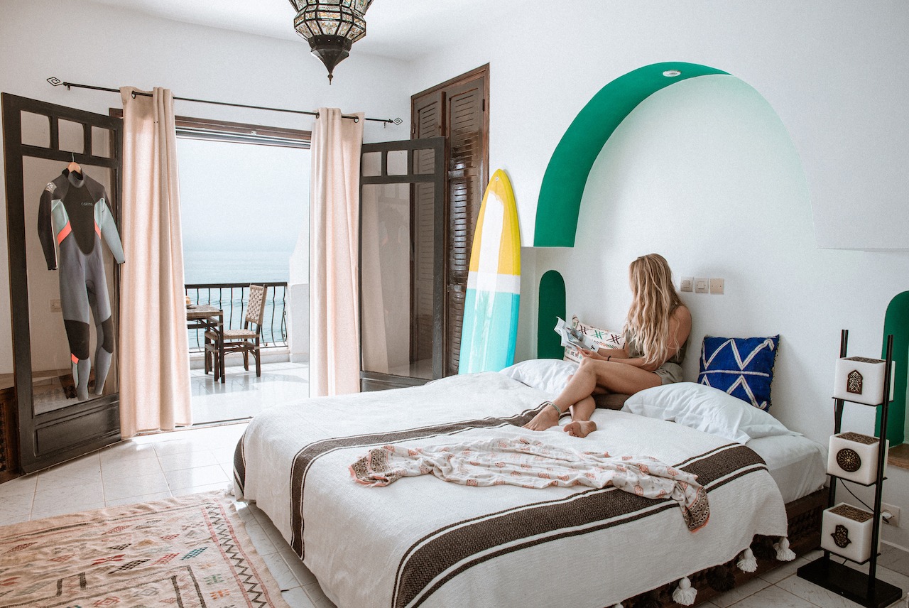 Our surf and yoga villa in Taghazout offers different room types. The rooms range from Shared to private standard, standard plus and premium.