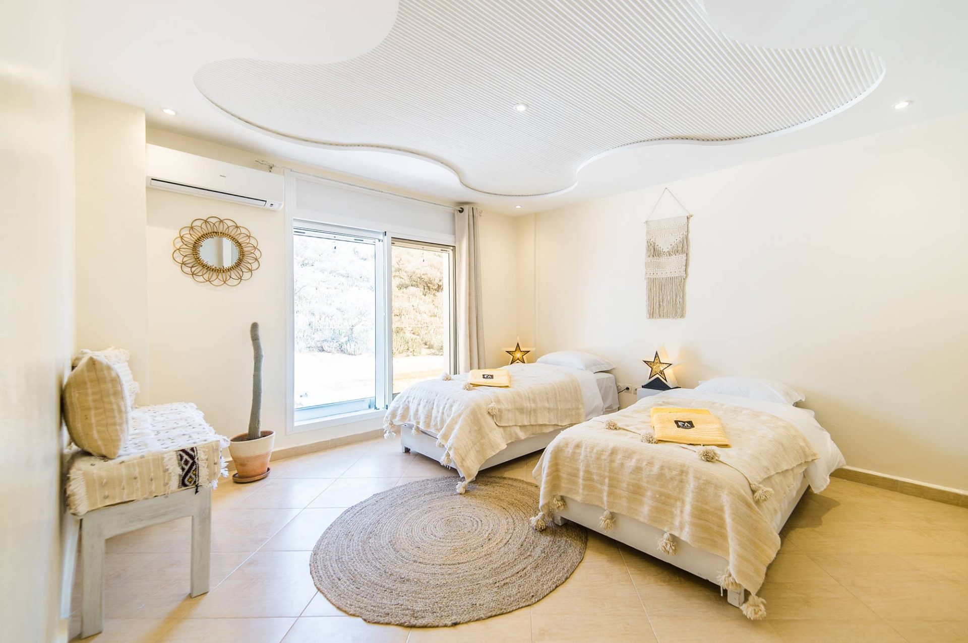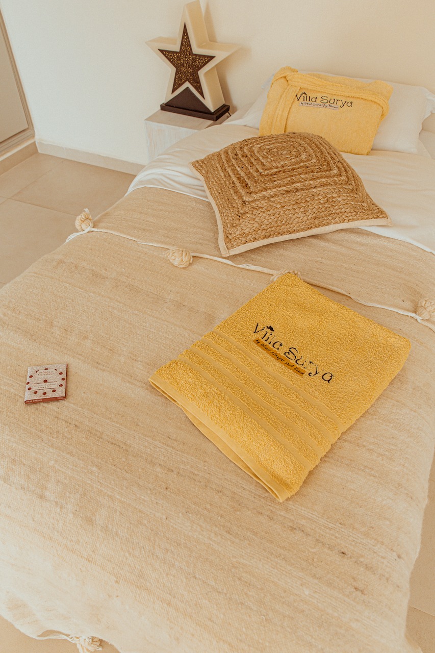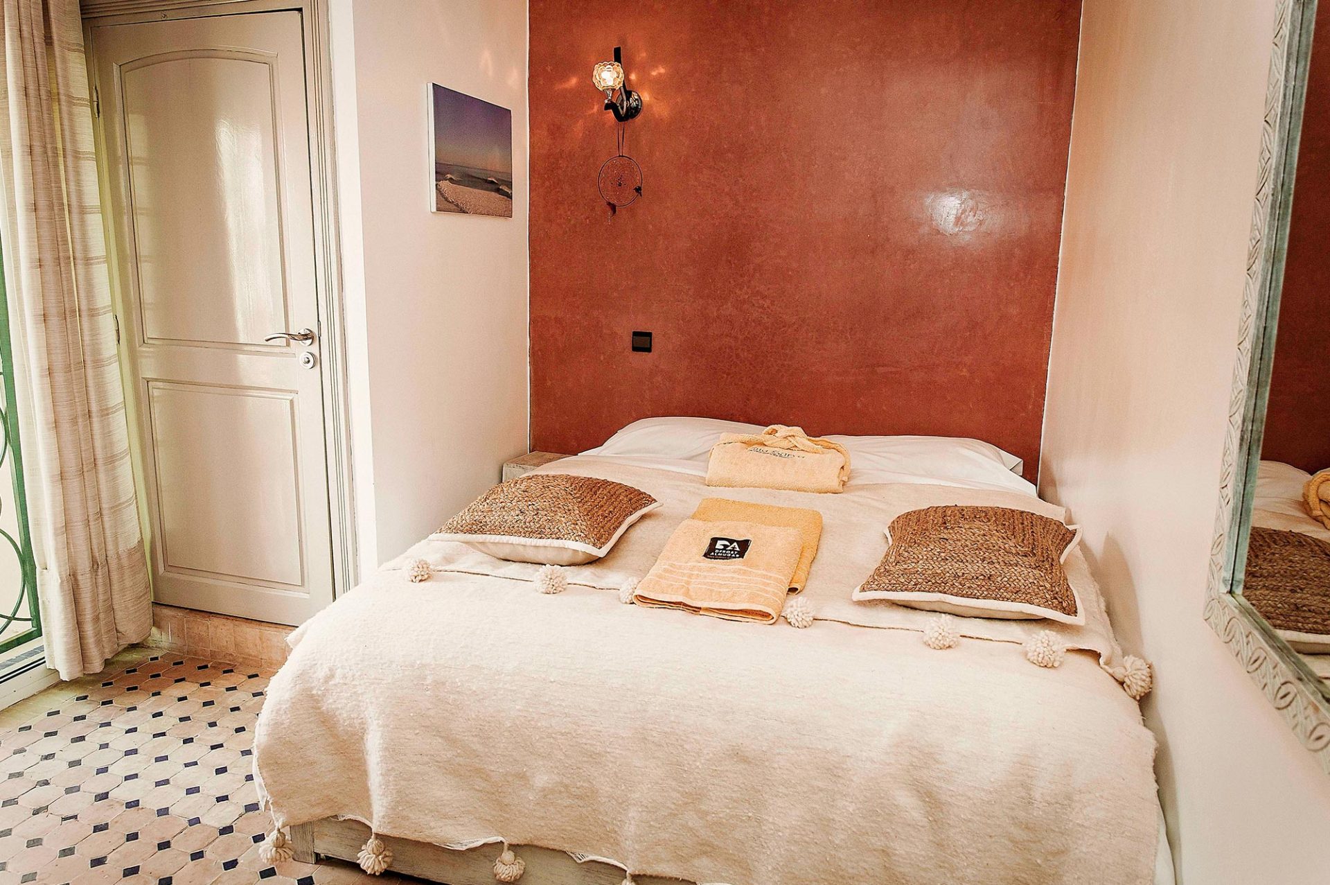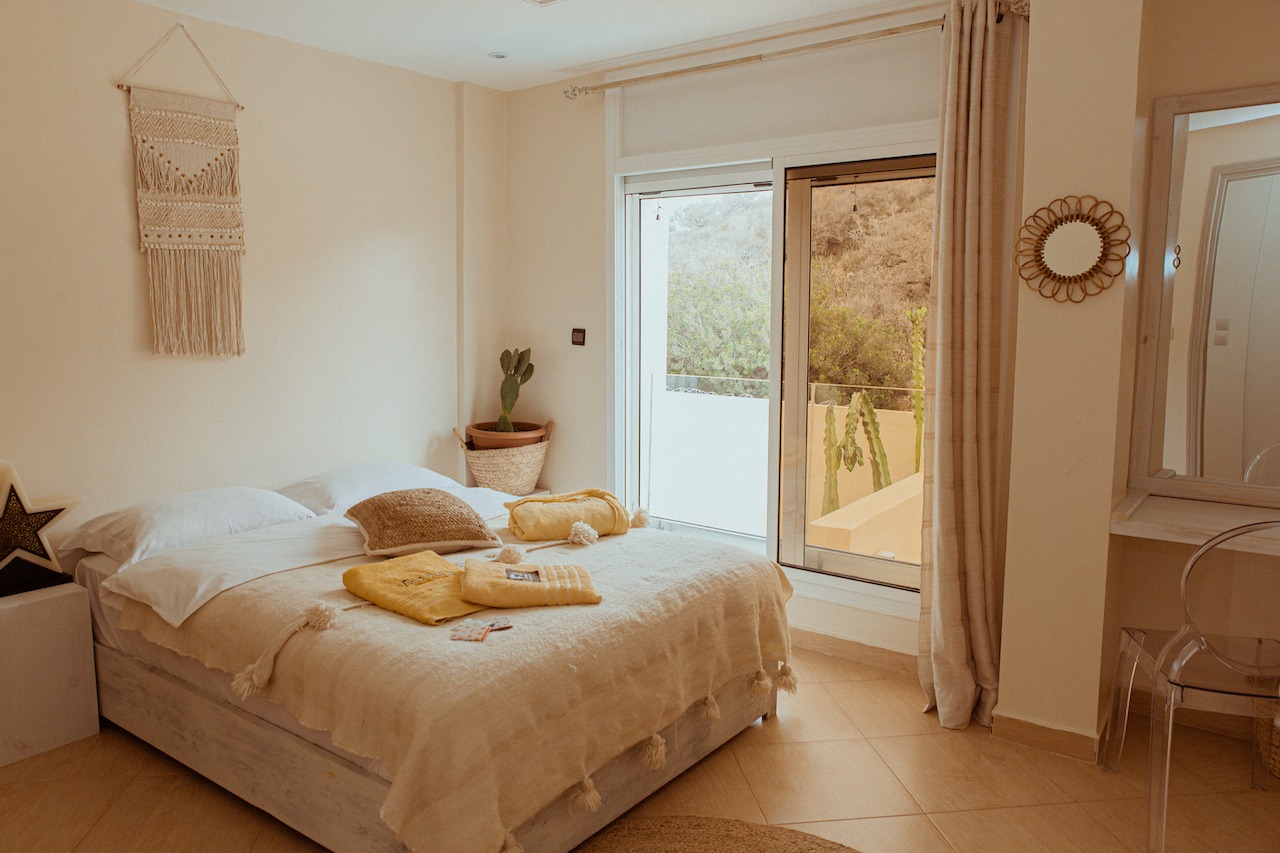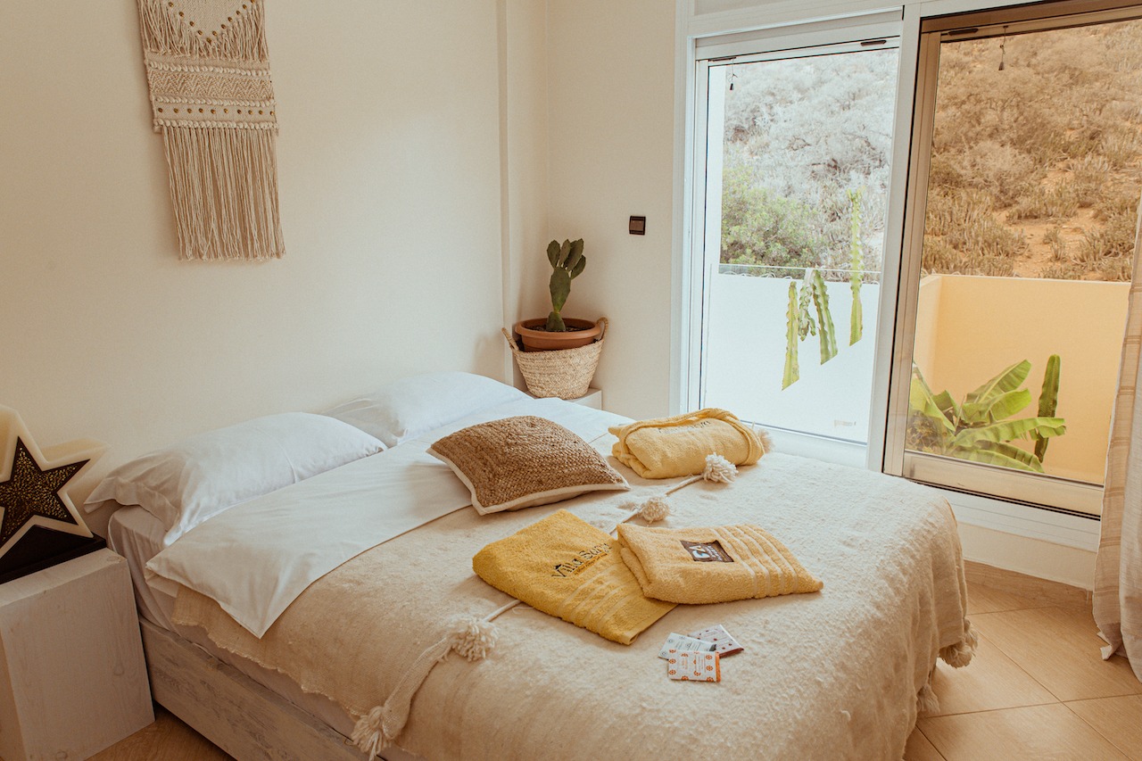 All rooms are decorated in a modern bohemian Morocco style. You sleep in handmade wooden beds with ergonomic mattresses and Egyptian cotton sheets.